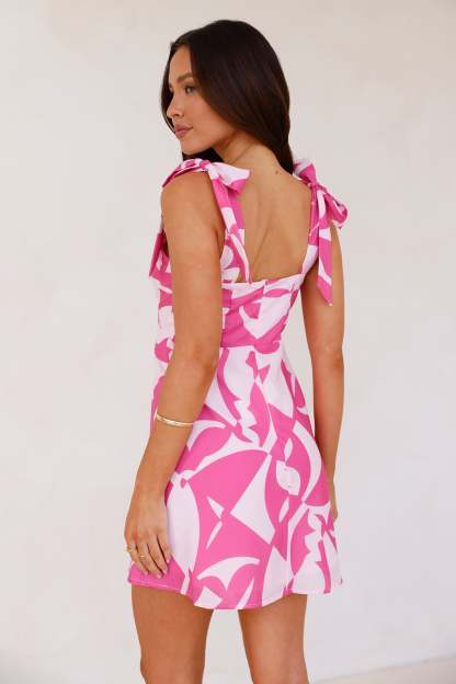 You'll feel flirty and fun in this mini. lovely! The Mood For Love Mini Dress features a V-neck. tie-up shoulder straps and a gorgeous print. Style with heels for the perfect daytime 'fit.
