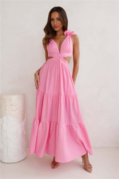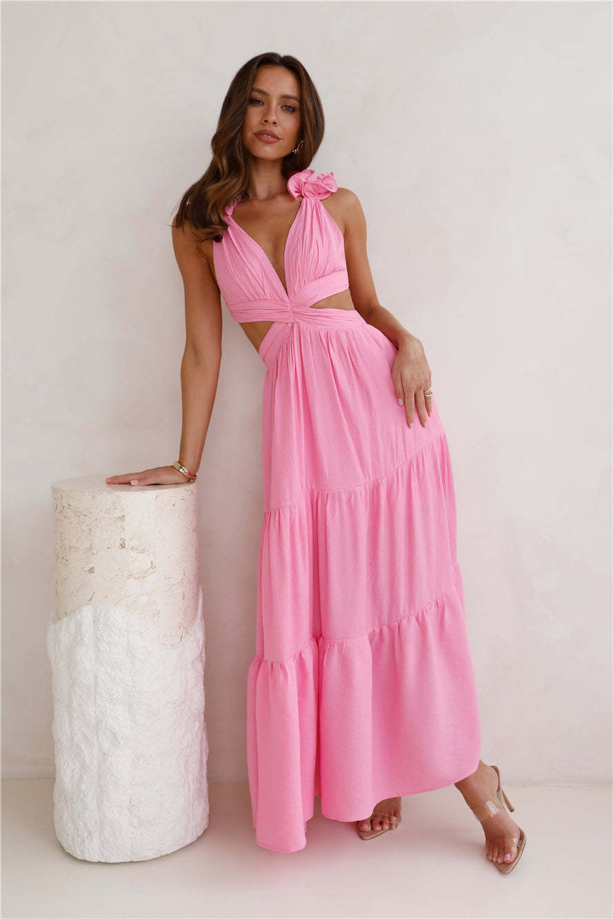 Feel gorgeous in the Moonlight Dance Maxi Dress. Featuring a crisscross back and extravagant frill shoulder straps. Style with heels for your next party and you'll be sure to impress.