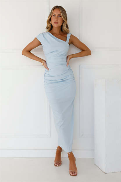 Lovely. this style is chic and sophisticated. The Music Under Moonlight Maxi Dress features an asymmetric neckline and a crisscross back design. Style with heels to turn heads in the best way possible.