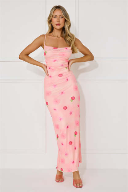 Be seen in a dreamy style. lovely! The Musical Dream Mesh Maxi Dress features a gorgeous subtle cowl neck. a crisscross tie-up back and a floral pattern. Style with heels for all the likes.