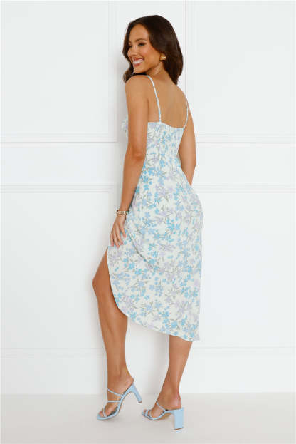 Enter your soft girl era with the Nature's Blossom Midi Dress. Featuring an elastic back. a wrap skirt and a gorgeous print. Style with heels for a dreamy 'fit.