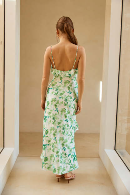Be seen in a dreamy style. lovely! The Palm Paradise Maxi Dress features frill details throughout. a V-neck. and adjustable shoulder straps. Style with sandals for a 'fit we're wearing all season.