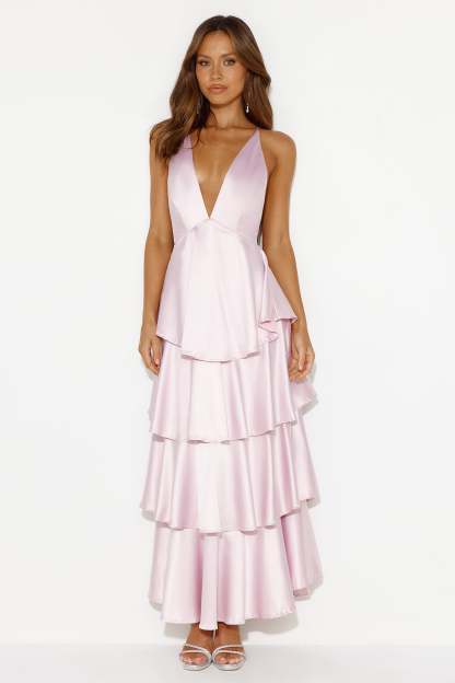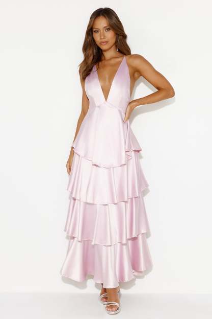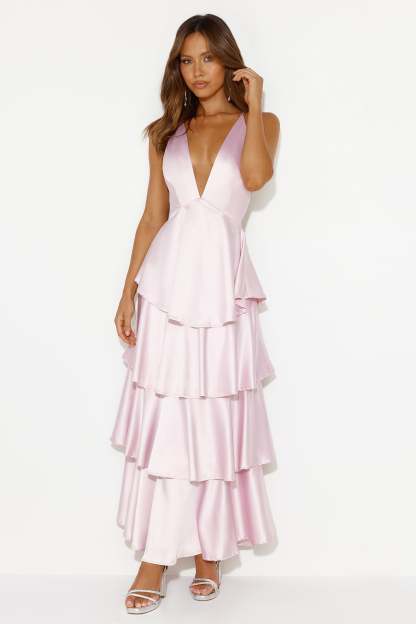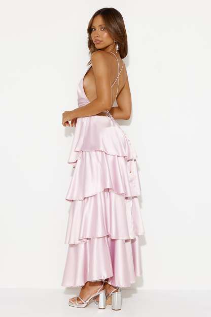 Party Of The Year Satin Maxi Dress Light Pink