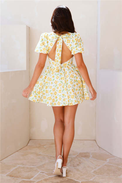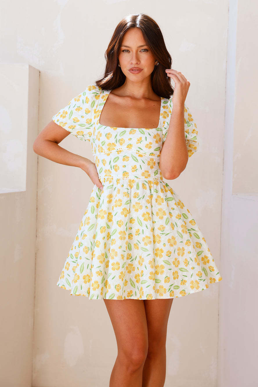 A flirty. fun style perfect for the summertime. The Picnic Dreams Mini Dress features a tulle underlayer to the skirt for volume and elastic puff sleeves. Style with sandals!