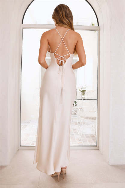 Red Carpet Affair Satin Maxi Dress Champagne