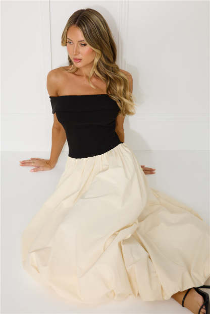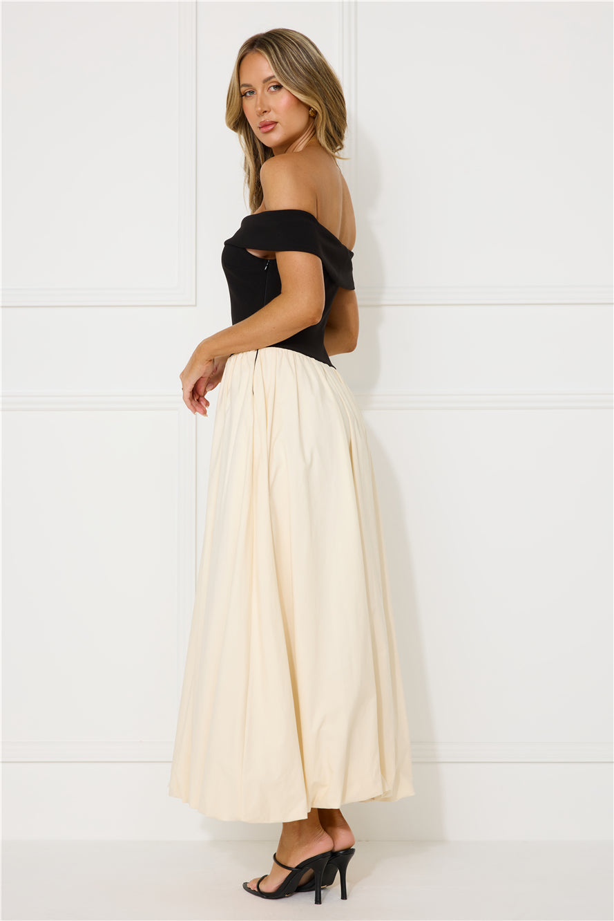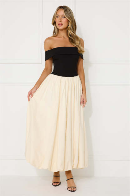 Regency Era Off Shoulder Bubble Midi Dress Black