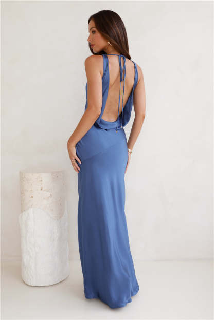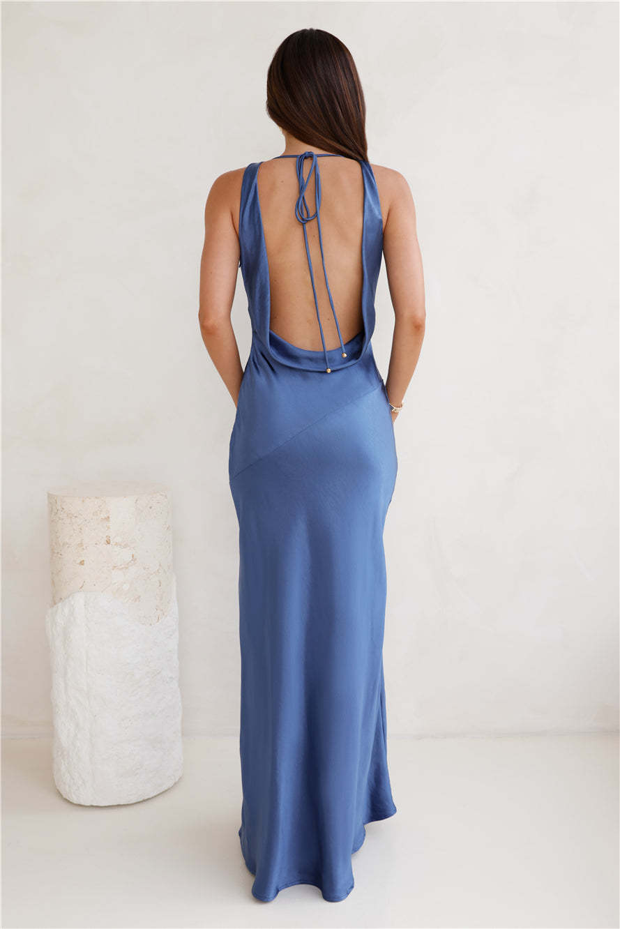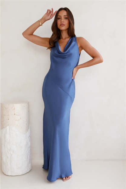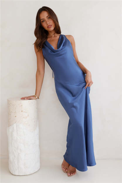 Seen For You Cowl Neck Satin Maxi Dress Navy