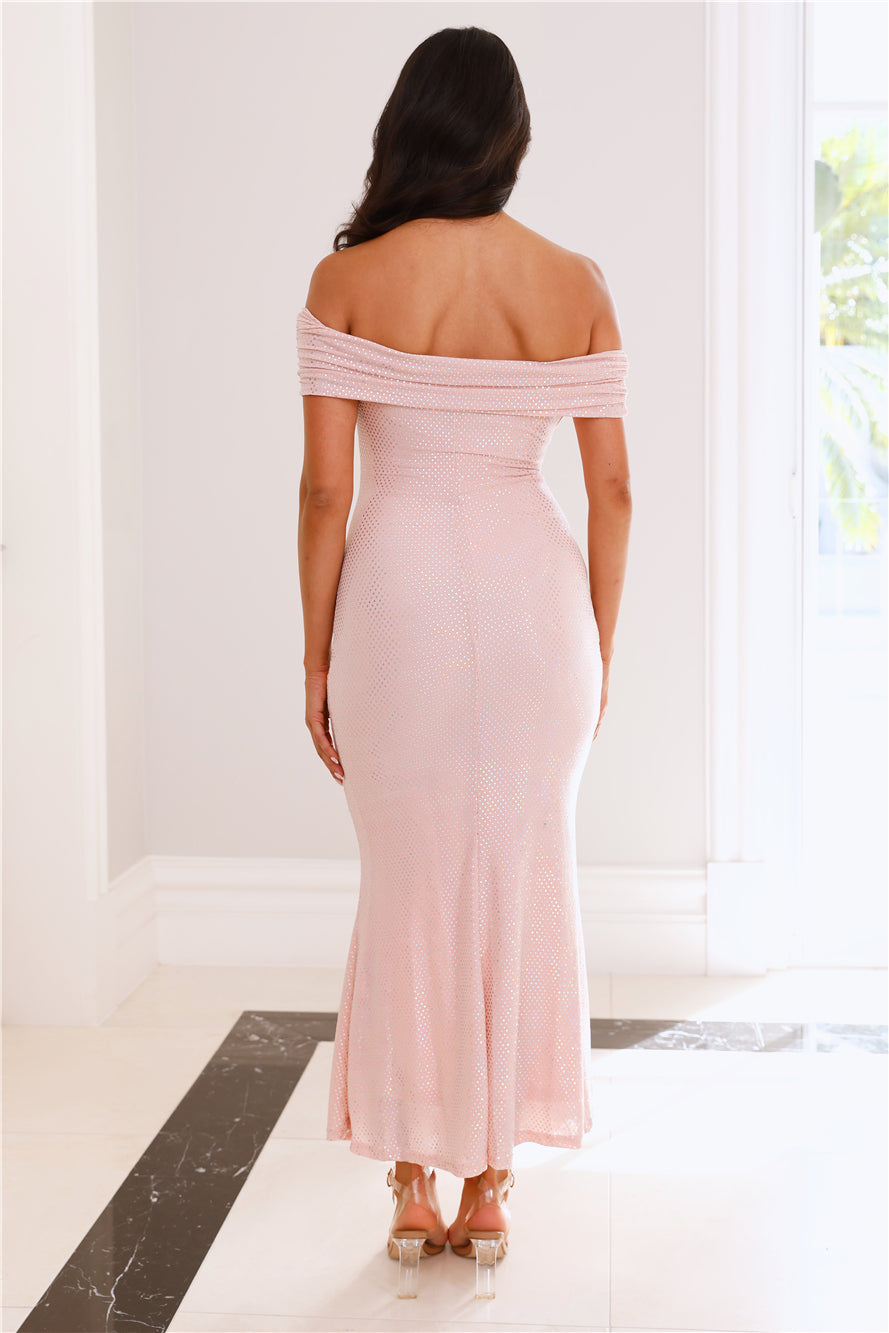 She Has Arrived Off Shoulder Glitter Maxi Dress Pink