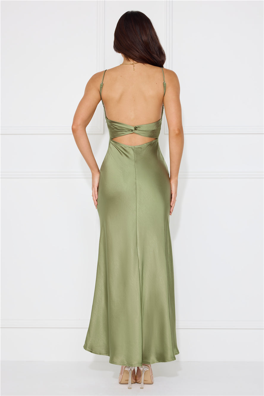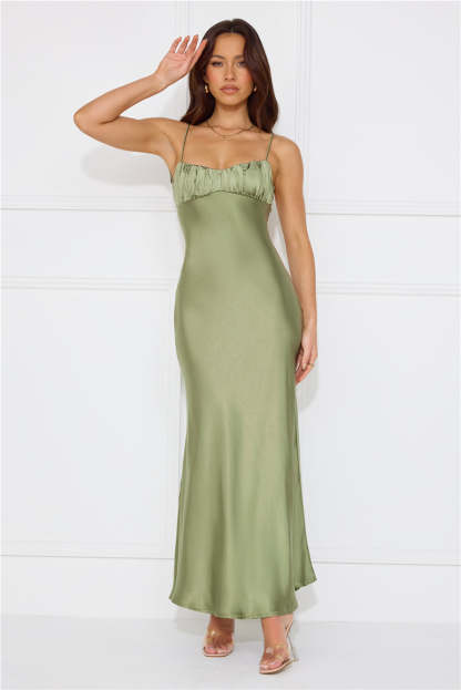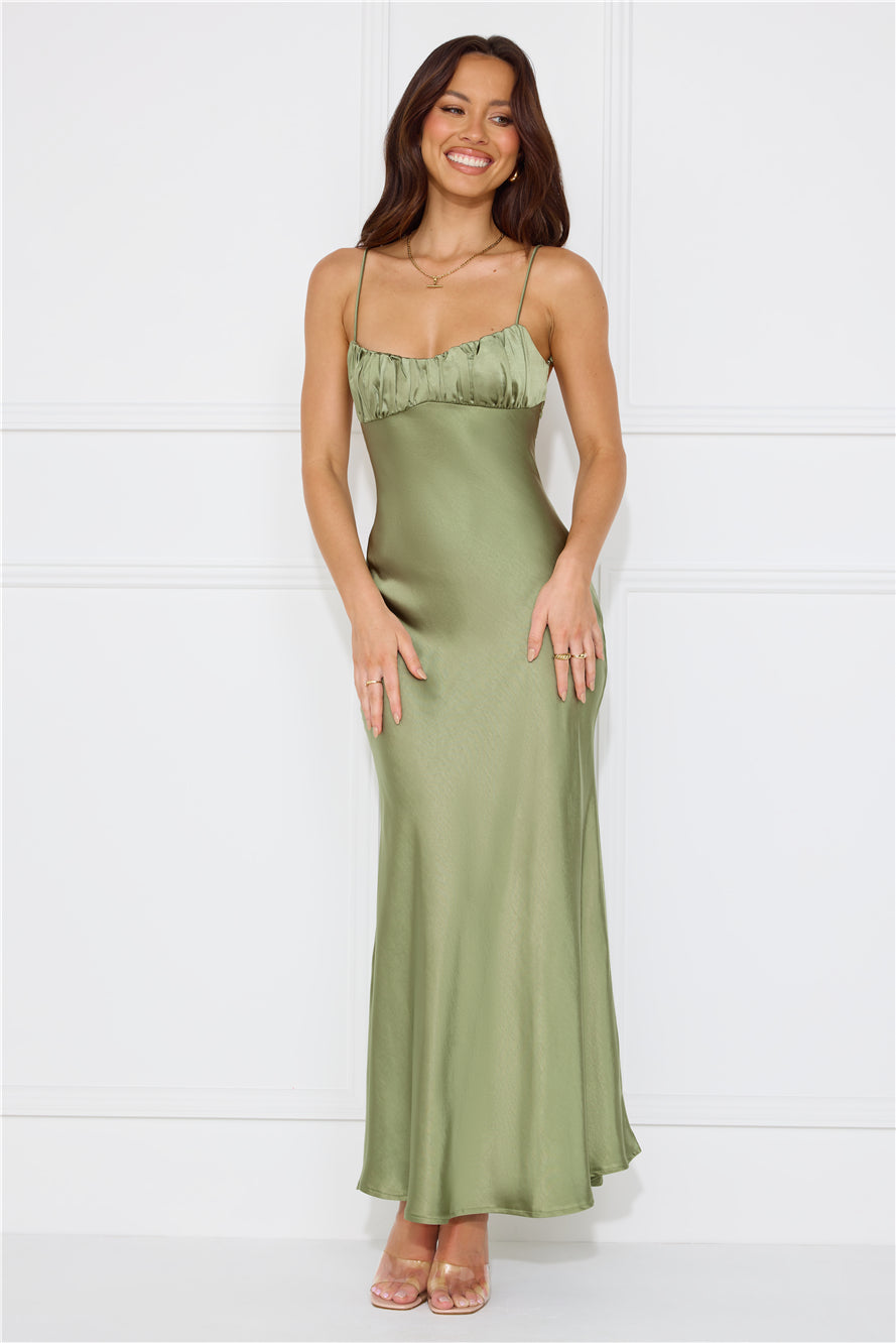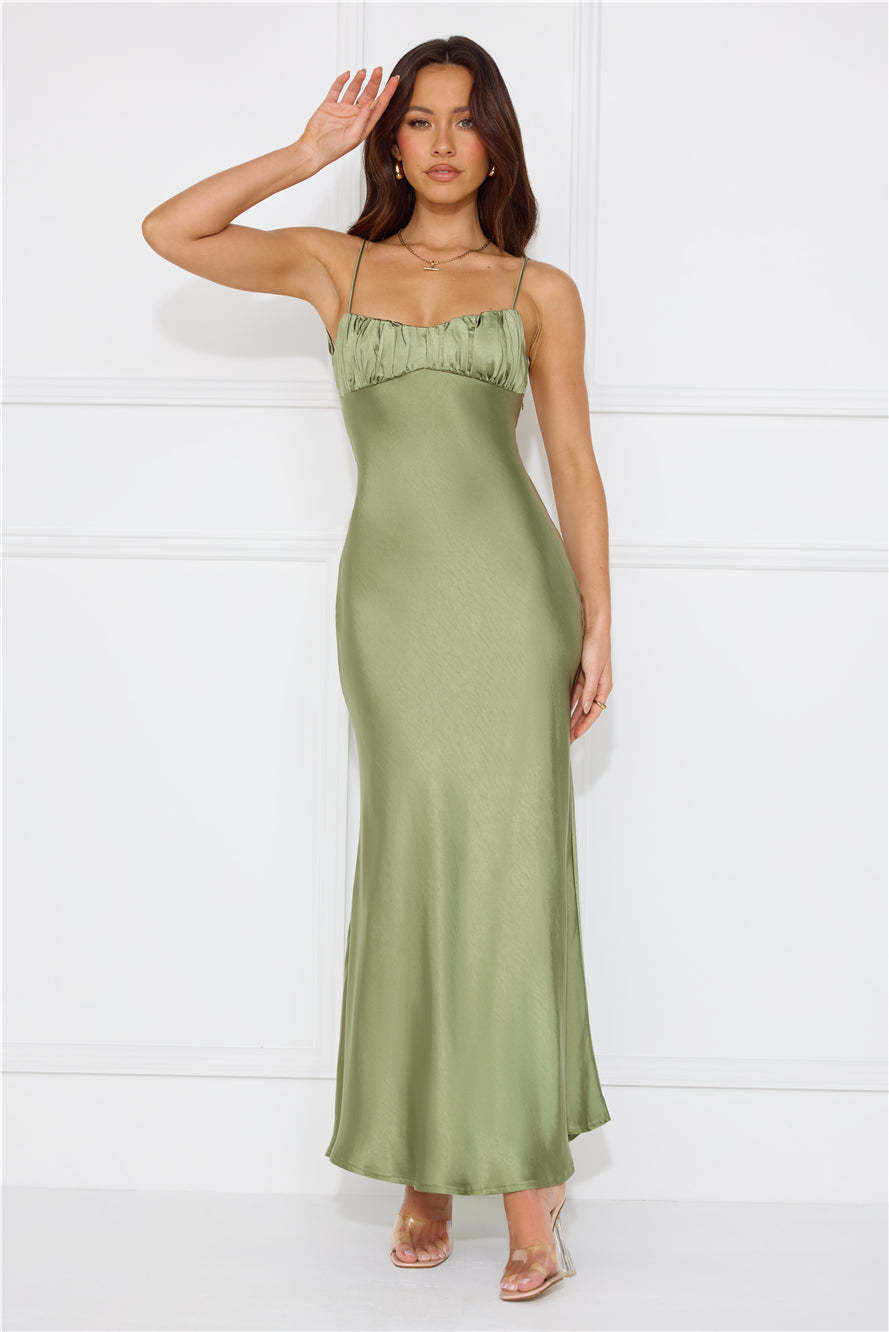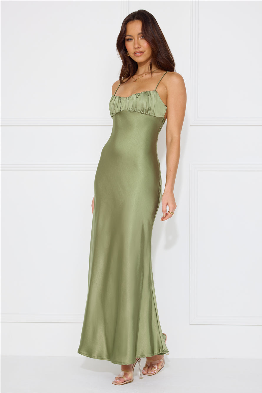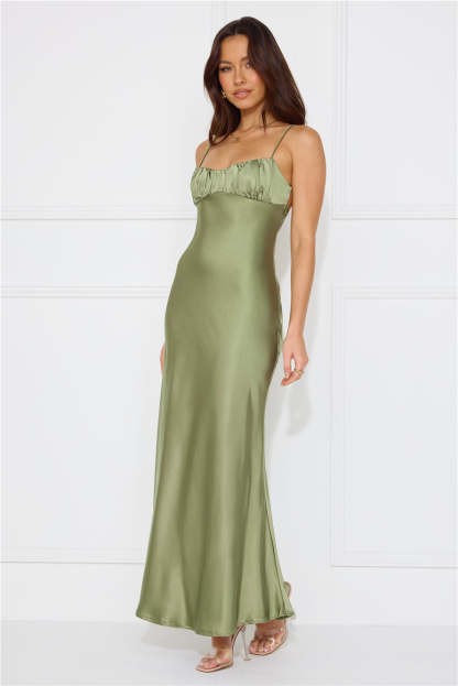 Silk Shimmers Satin Maxi Dress Olive