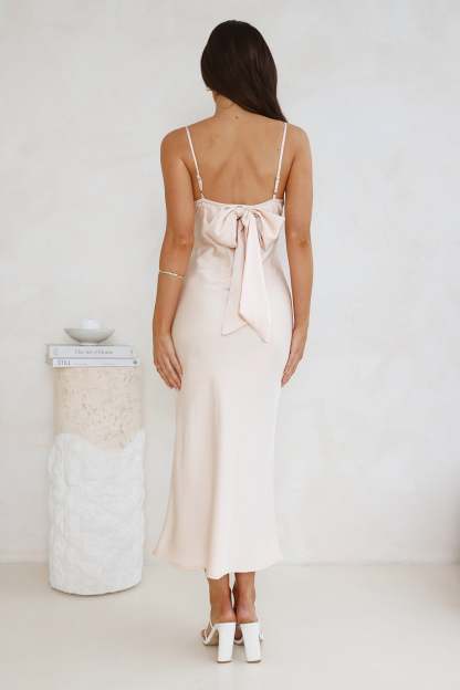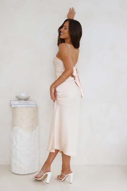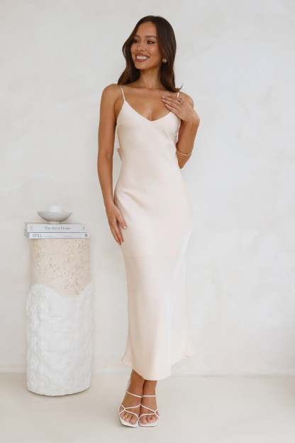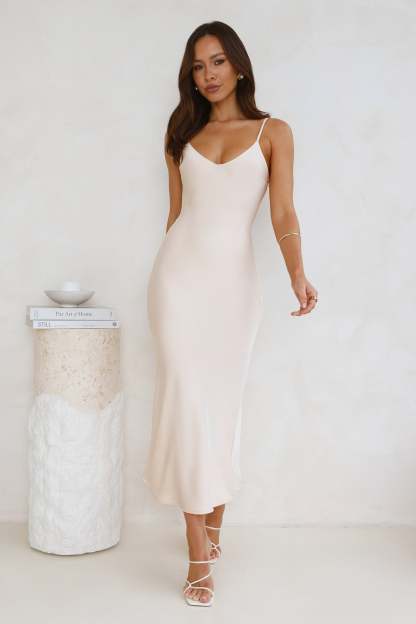 Sophisticated Satin Slip Midi Dress Champagne