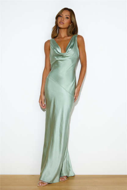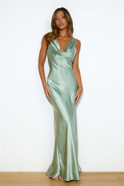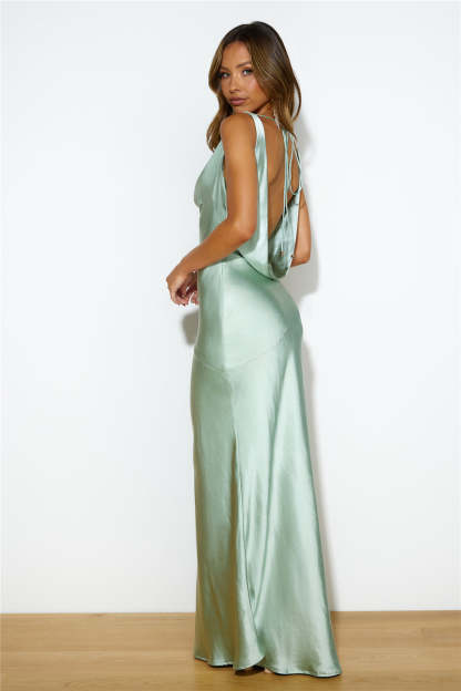 Be seen in the Special Guest Satin Maxi Dress. Featuring a cowl neck design and tie-up back. Style with heels for a look that'll get you compliments.