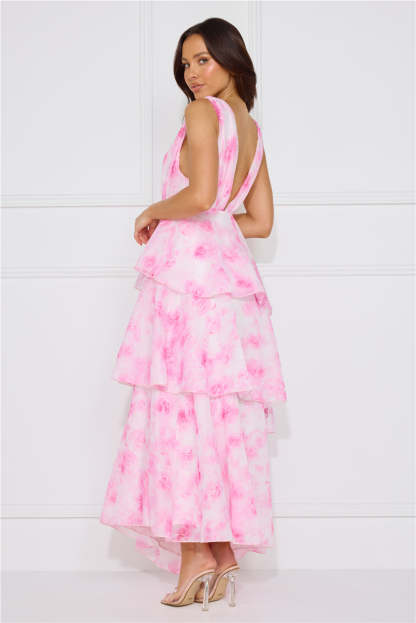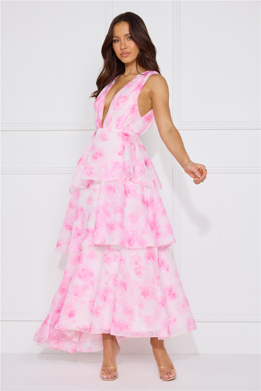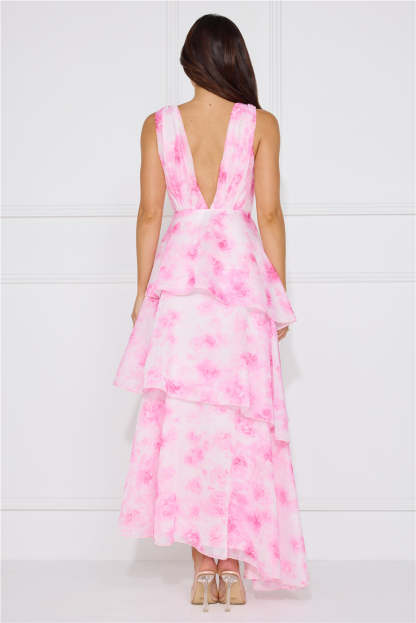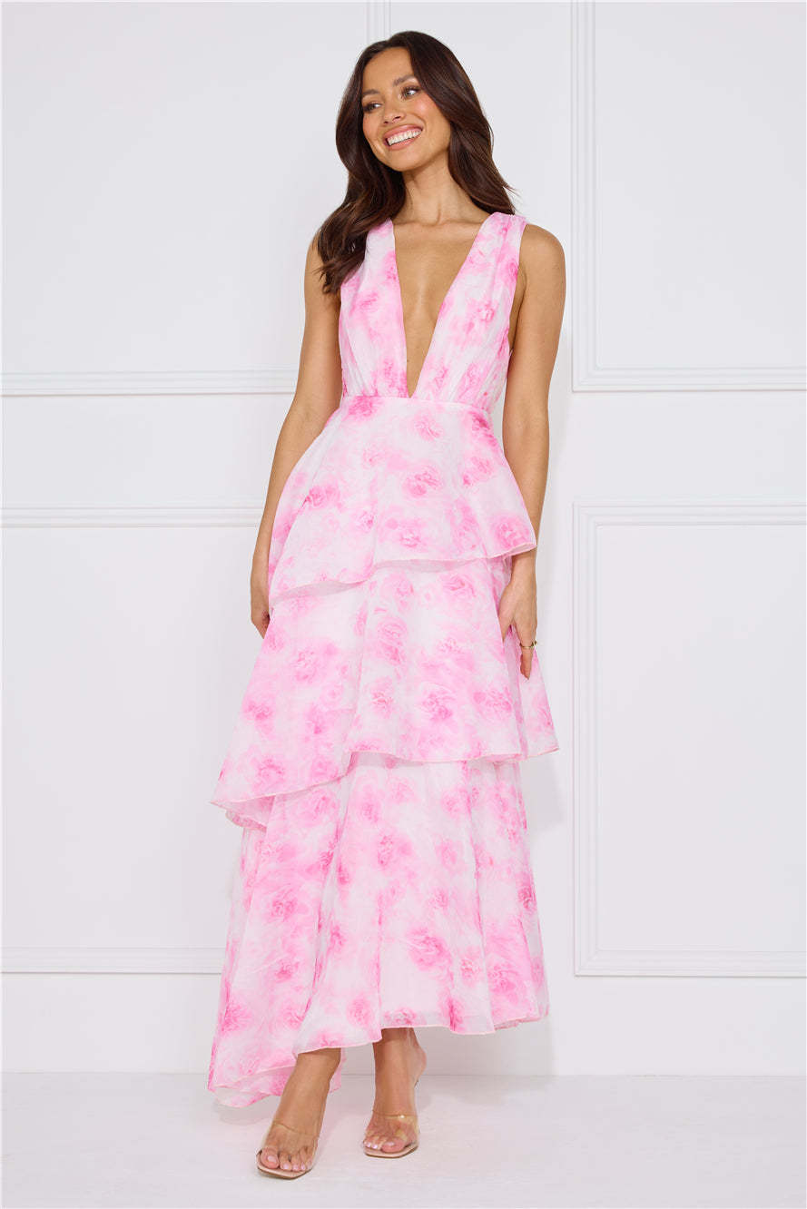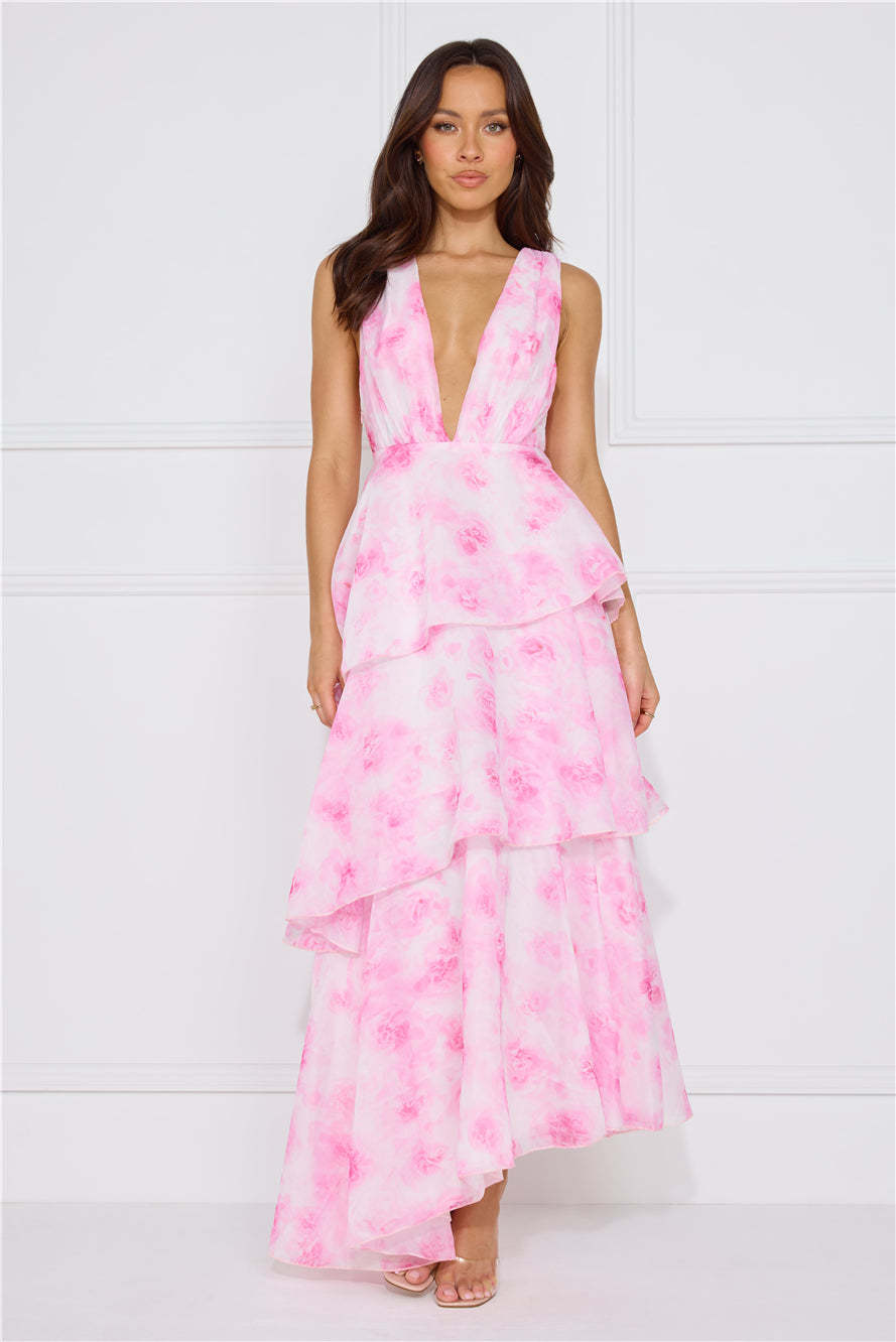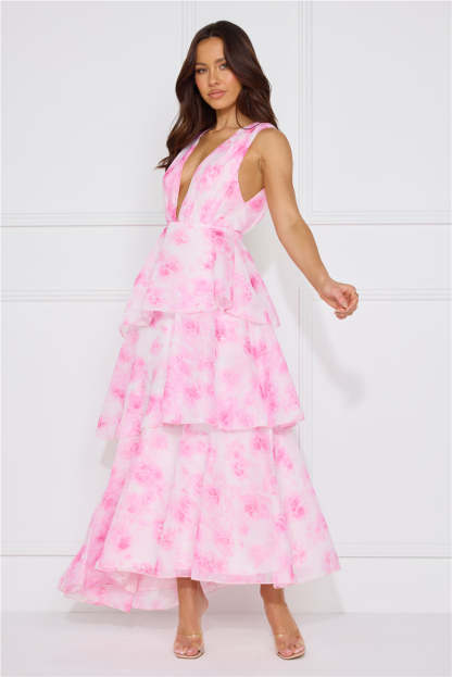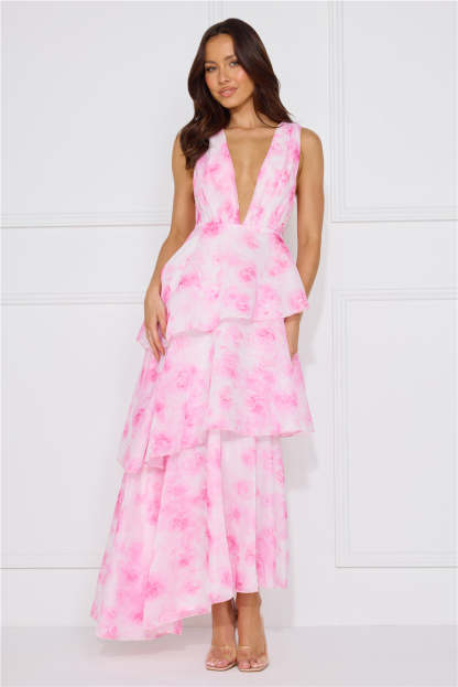 It's time to style a fab dress like the Splendor In The Night Maxi Dress. Featuring a V-neck and back with a tiered frill skirt. Style with heels for all the attention.