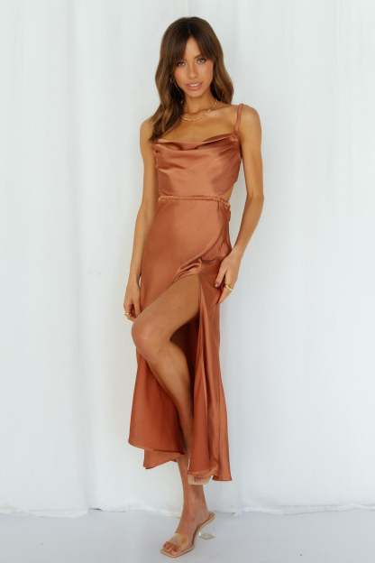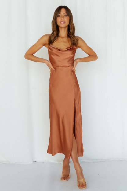 Stand On My Own Midi Dress Rust