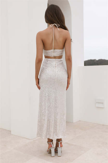You'll be the party in this dress girl. The Standing Out Maxi Dress features metal ring detail. halter neck and cutout style. Wear to impress with your highest heels.
