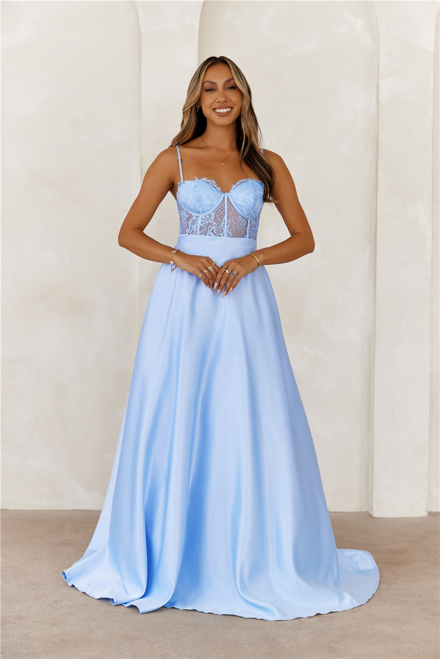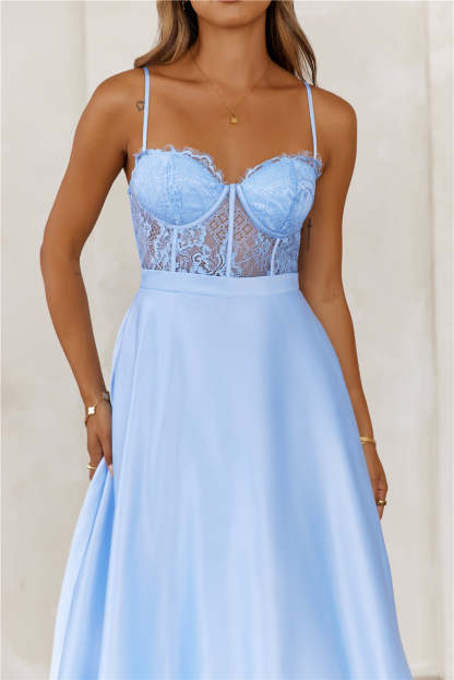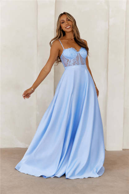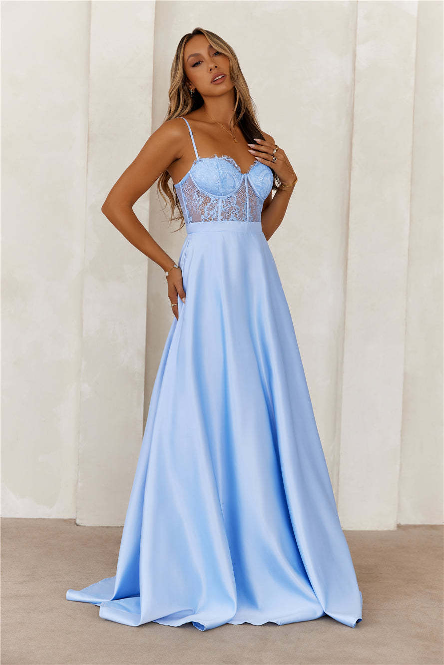 Starry Serenade Satin Maxi Dress Blue