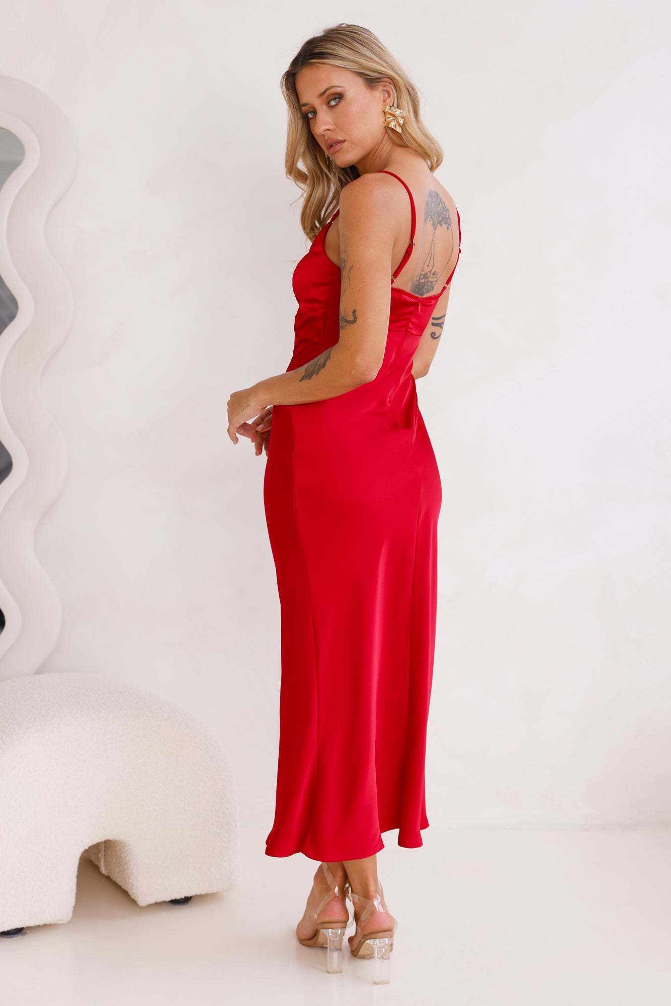 Get ready to feel amazing in the Style Compass Satin Midi Dress. Featuring a silky satin silhouette. a bead detail to the neckline and a straight. flowy fit. Style with heels for all the love.