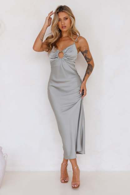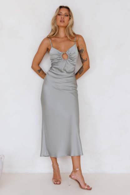 Style Compass Satin Midi Dress Sage