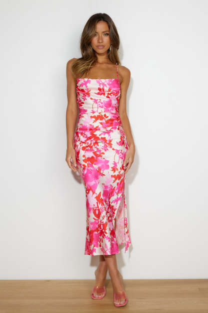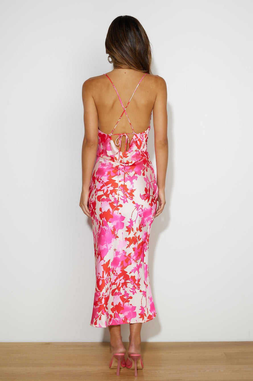 Style On The Street Satin Midi Dress Pink
