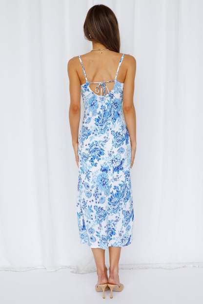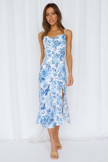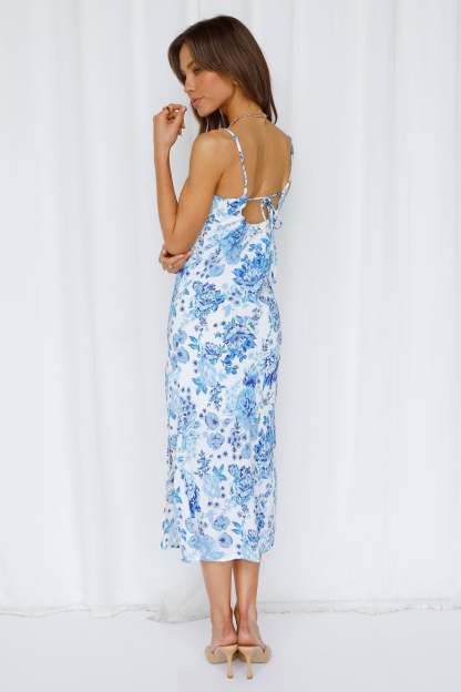 Everyone needs a dress for every occasion. so make sure to look amazing for a walk too. A simple. yet oh so elegant dress featuring a minimalistic slip silhouette. side slit. and a stunning print. We like to style ours with nude mules and a glowing tan!