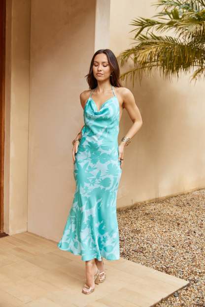 Style yourself in class with the Sweet Autumn Leaves Satin Halter Maxi Dress. Crafted from luxurious satin and designed with a gorgeous cowl neck and back. exuding timeless sophistication. Perfect for any special occasion styled with heels.