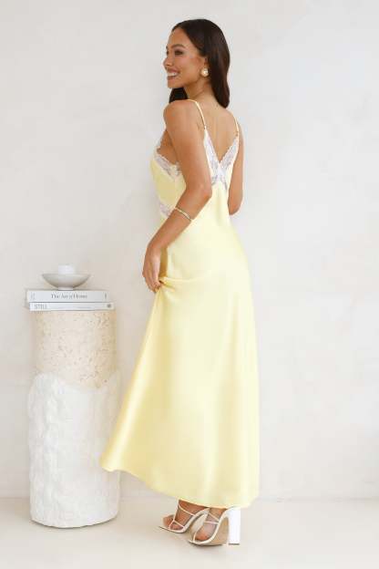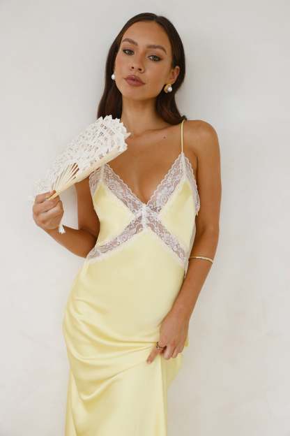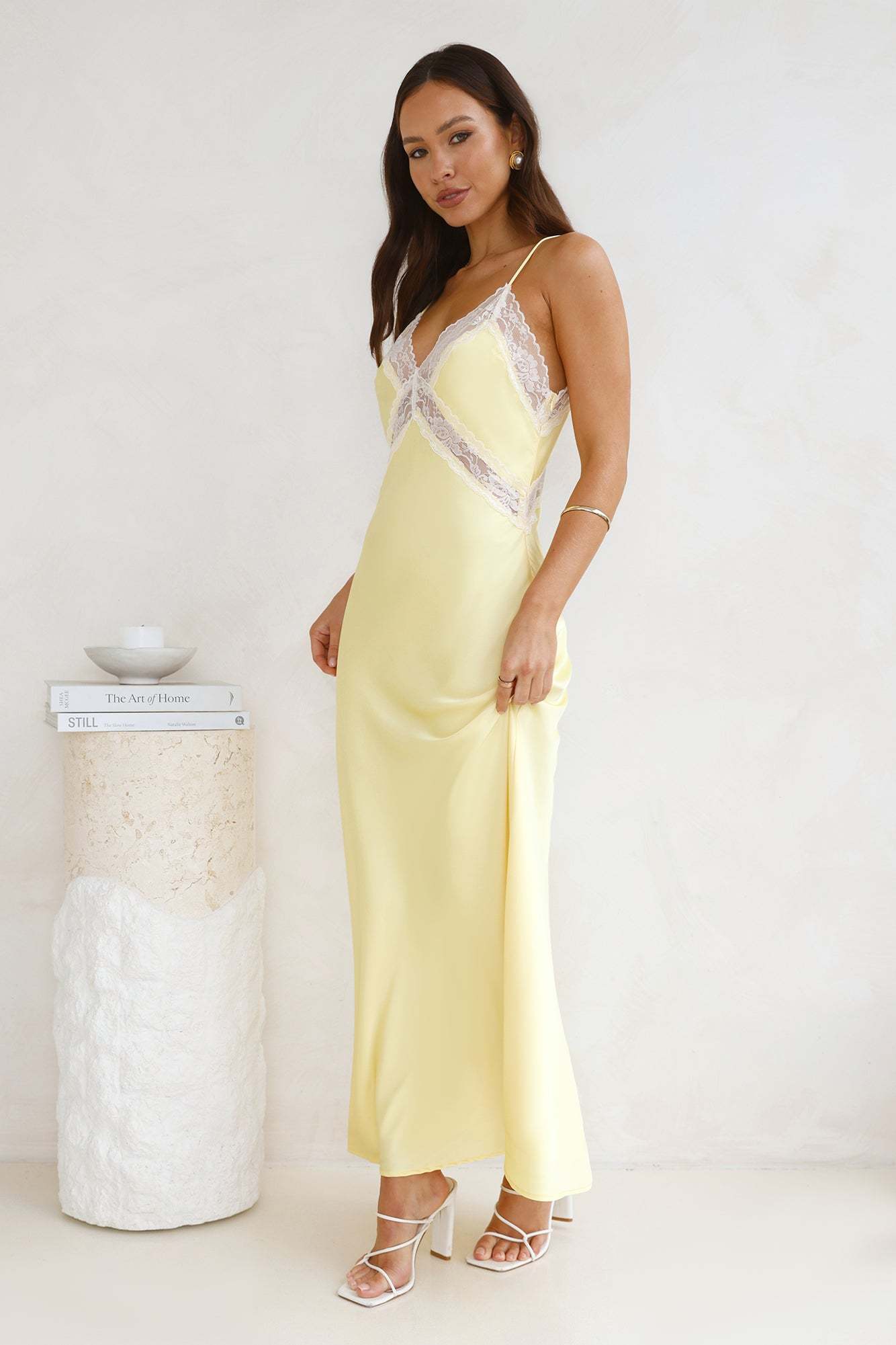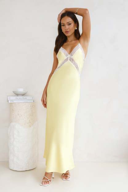 Ultimate Love Satin Slip Maxi Dress Yellow