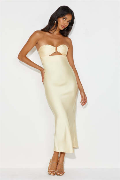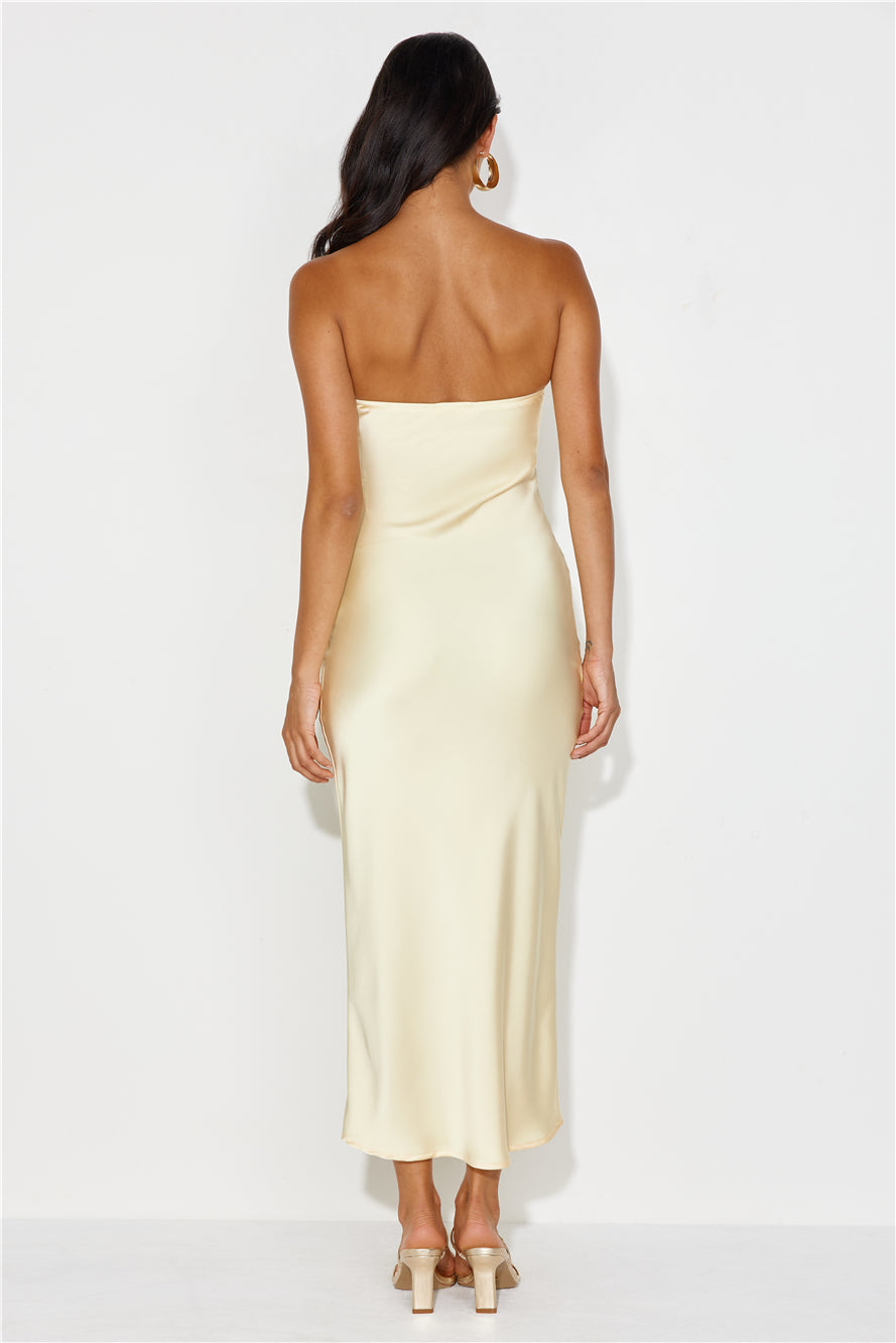 Unlike No Other Strapless Satin Maxi Dress Yellow