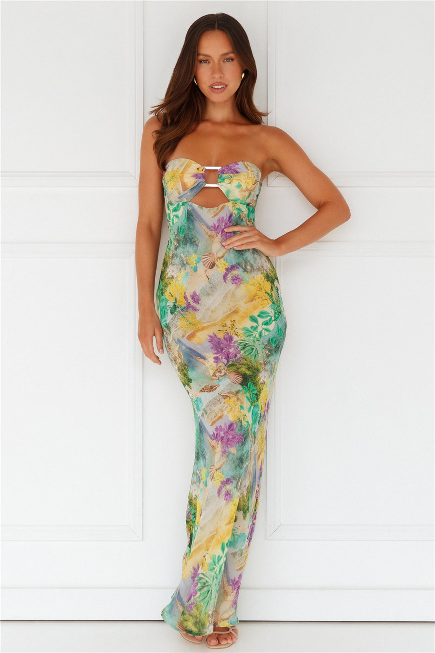 Embrace colour this season in the Velzy Strapless Dress by RUNAWAY. Featuring a strapless neckline. hardware detailing and a flowy fit. Style with sandals for a 'fit we're wearing during the summertime.
