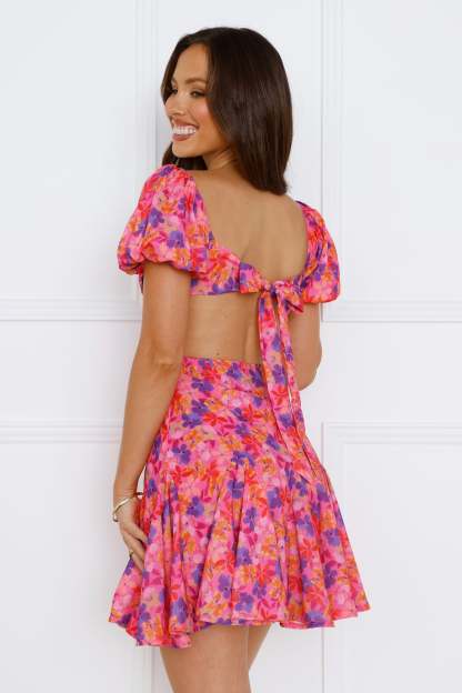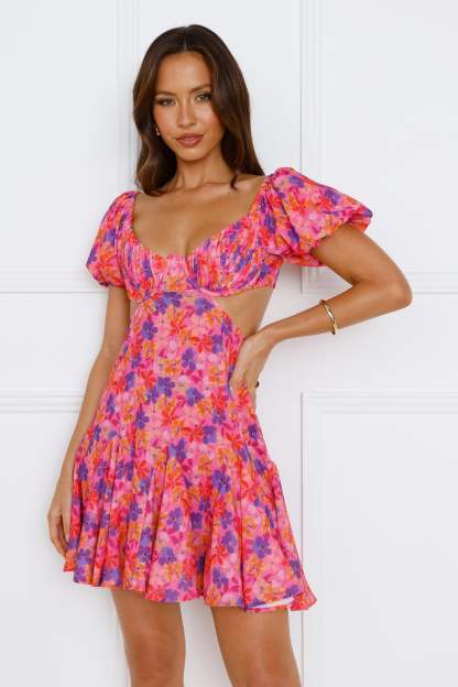 Dance around with Vivid Words and this FAB piece. This mini is made for delicate moments in the daytime as it features a plunging neckline. waist cut-outs with puff short sleeves. a back cut-out + ties and a flowy skirt. Style yours with mules and dainty jewellery.