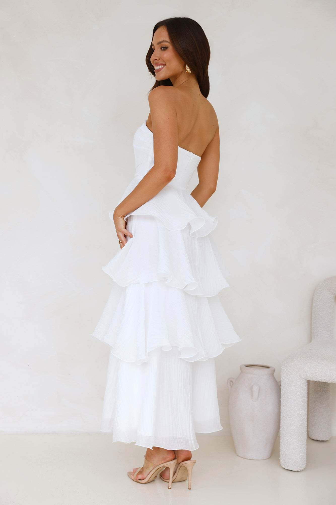 Lovely. we've got an extravagant style. just for you! The Wedding Adventure Strapless Maxi Dress features a tiered frill skirt. boning to the bodice and a gathered top. Style with heels and curls for a gorgeous 'fit.