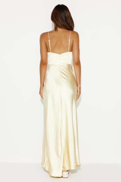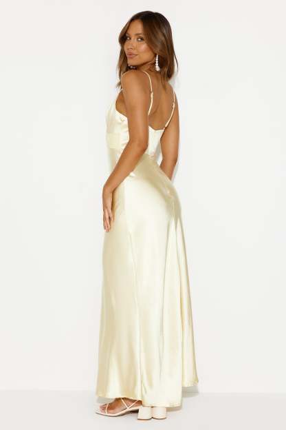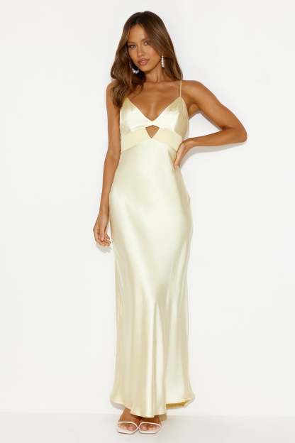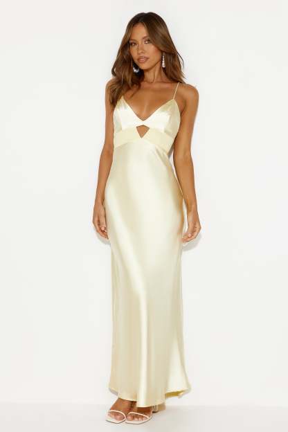 Lovely. this is the picture-perfect dress you need to be seen in! The Welcome Spring Satin Maxi Dress features a dainty cutout to the bodice and a gorgeous flowy skirt. Style with heels for compliments.