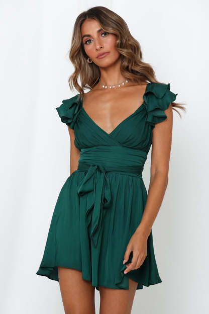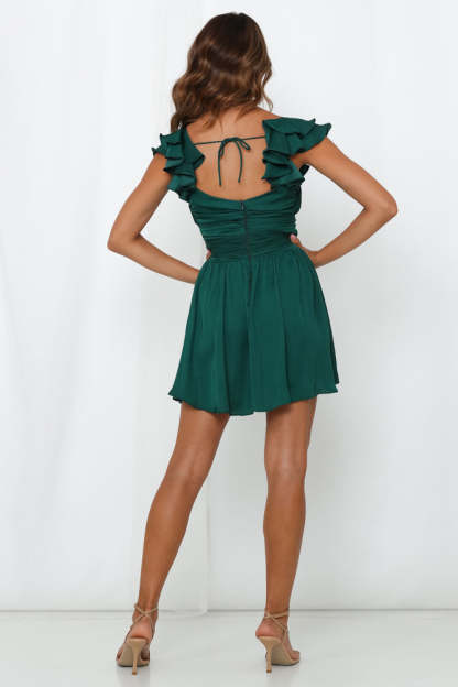 - Forest green mini dress.