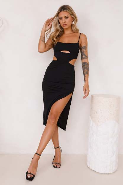 Did we give you the Wrong Number? Totes wasn't on purpose. But this moment DEFS is! Featuring a scoop neckline with a bust cut-out. waist cut-outs and a bodycon fit. Style yours with heels and waves.