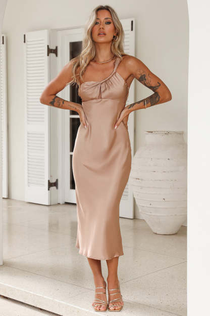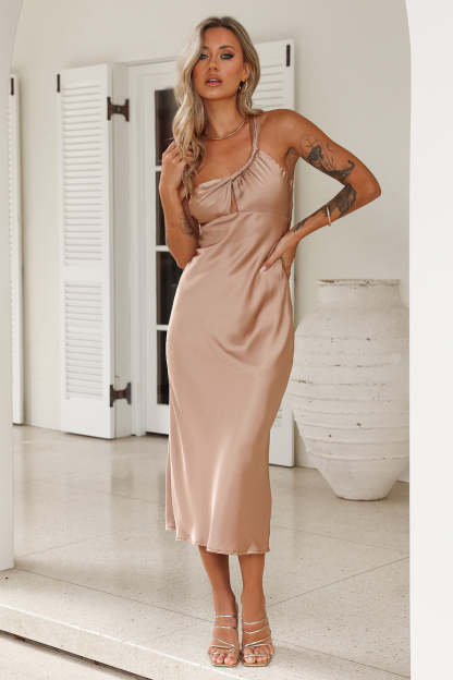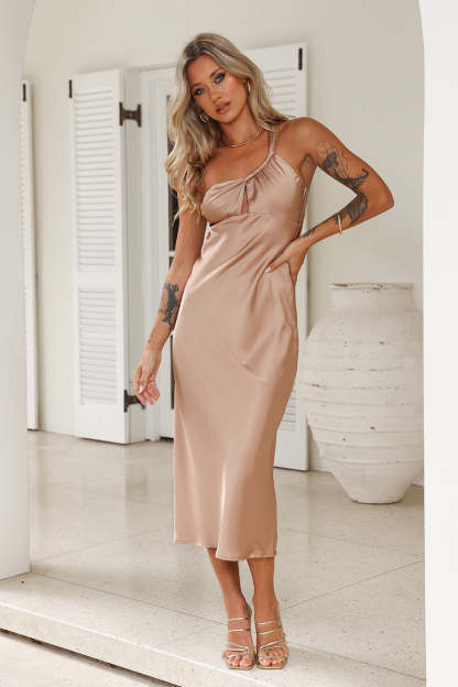 Channel your inner style with the Your Truth Satin Maxi Dress. Featuring an asymmetrical neckline and cut-out detail. Style with heels for all the compliments.