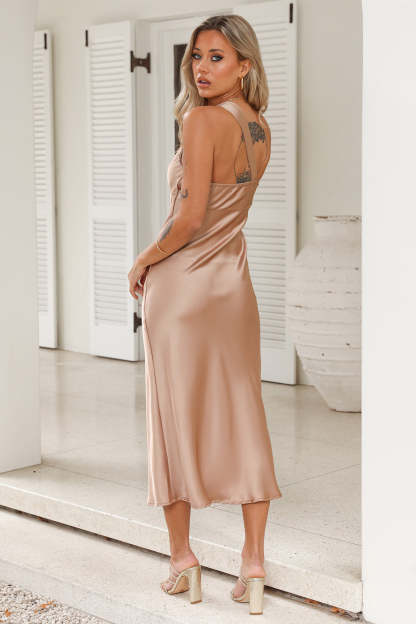 Your Truth Satin Maxi Dress Brown